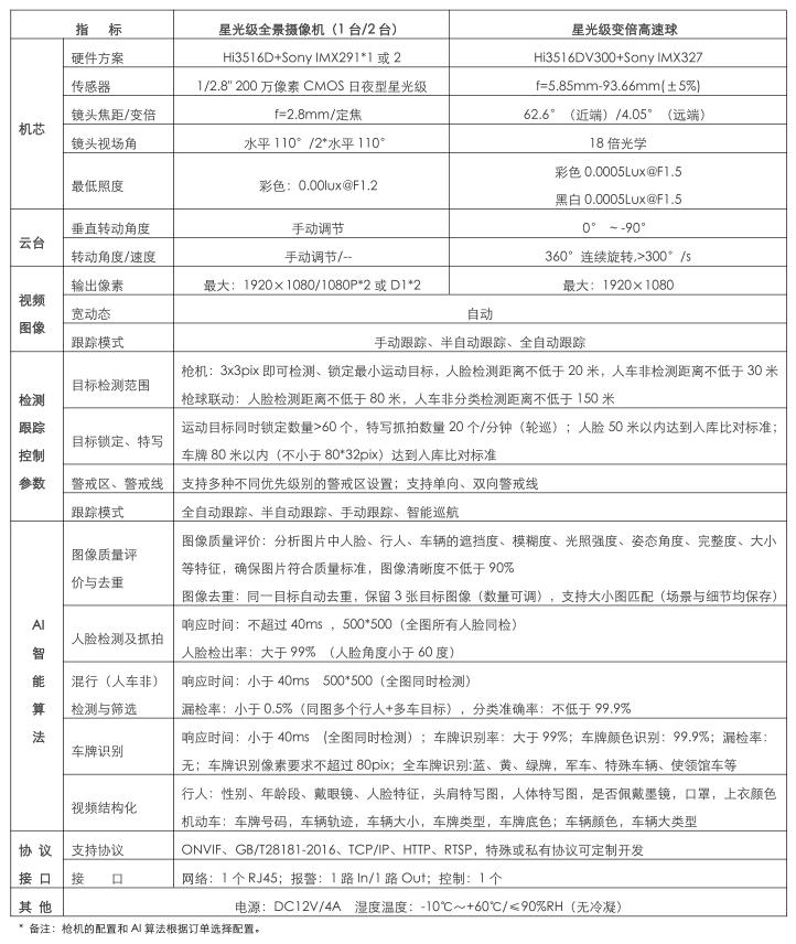 ? 星光級高清全景攝像機+18 倍光學變焦智能 AI 一體化高速球;
